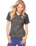 The tee takes a turn toward feminine with a flattering fit and V-neckline.